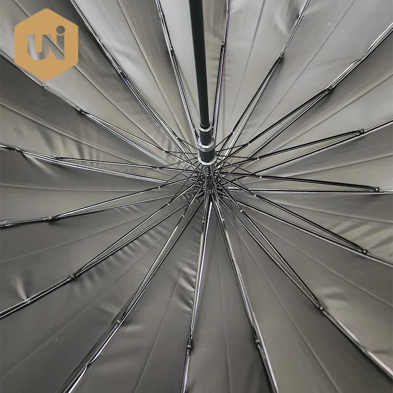 guarda-chuva adulto UV da vara 16k moldura e haste em fibra de vidro, cabo de borracha, tecido estampado com revestimento preto pongee, tecido maciço com resistência à água. |