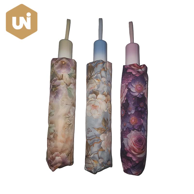 Guarda-chuvas abertos manuais dobráveis para senhora estrutura de fibra de vidro e eixo de metal, alça de plástico de cor correspondente, material sólido de poliéster |