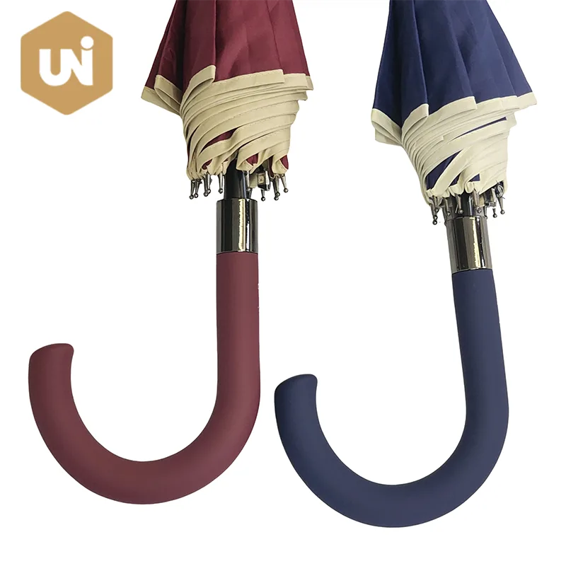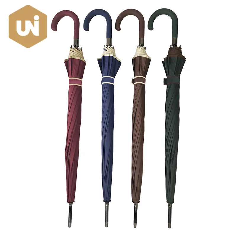 Guarda-chuva masculino adulto estrutura de fibra de vidro e haste de metal, cabo de borracha, tecido sólido pongee 210T com resistência à água. |