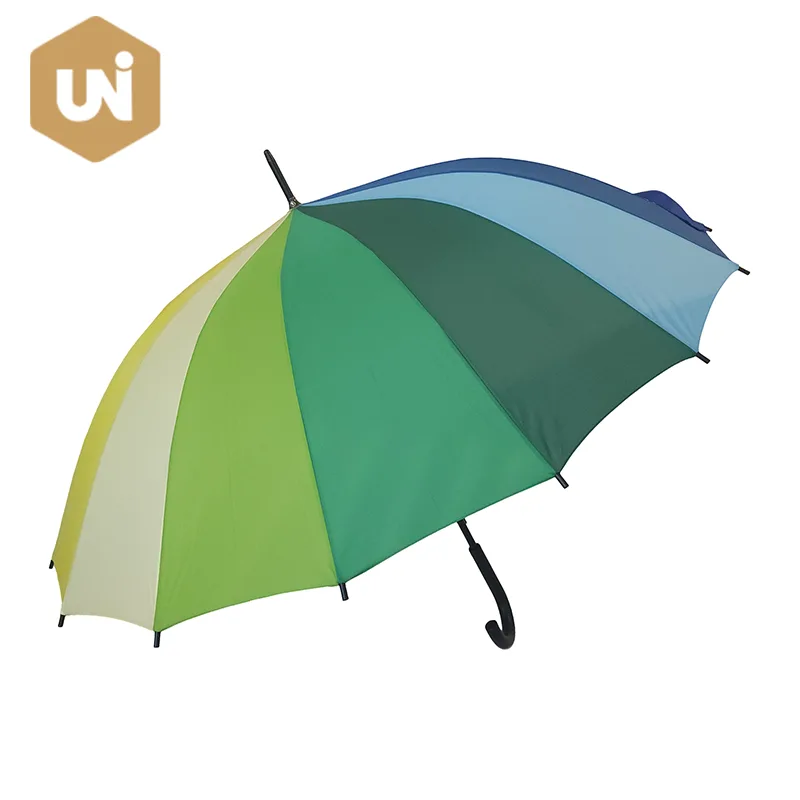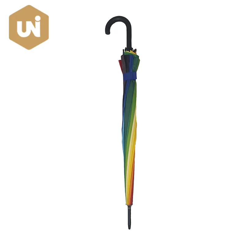 Guarda-chuva automático Rainbow Adult Stick estrutura e eixo de fibra de vidro, cabo de borracha, tecido sólido pongee 210T com resistência à água. |