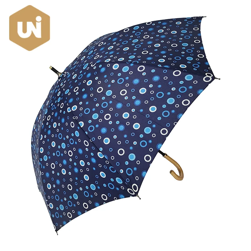 Guarda-chuva infantil aberto manual de madeira estrutura e haste em fibra de vidro, cabo de madeira, tecido maciço pongee 210T com resistência à água. |